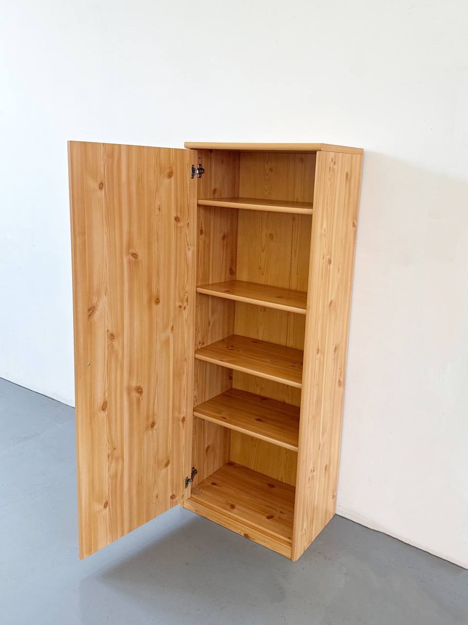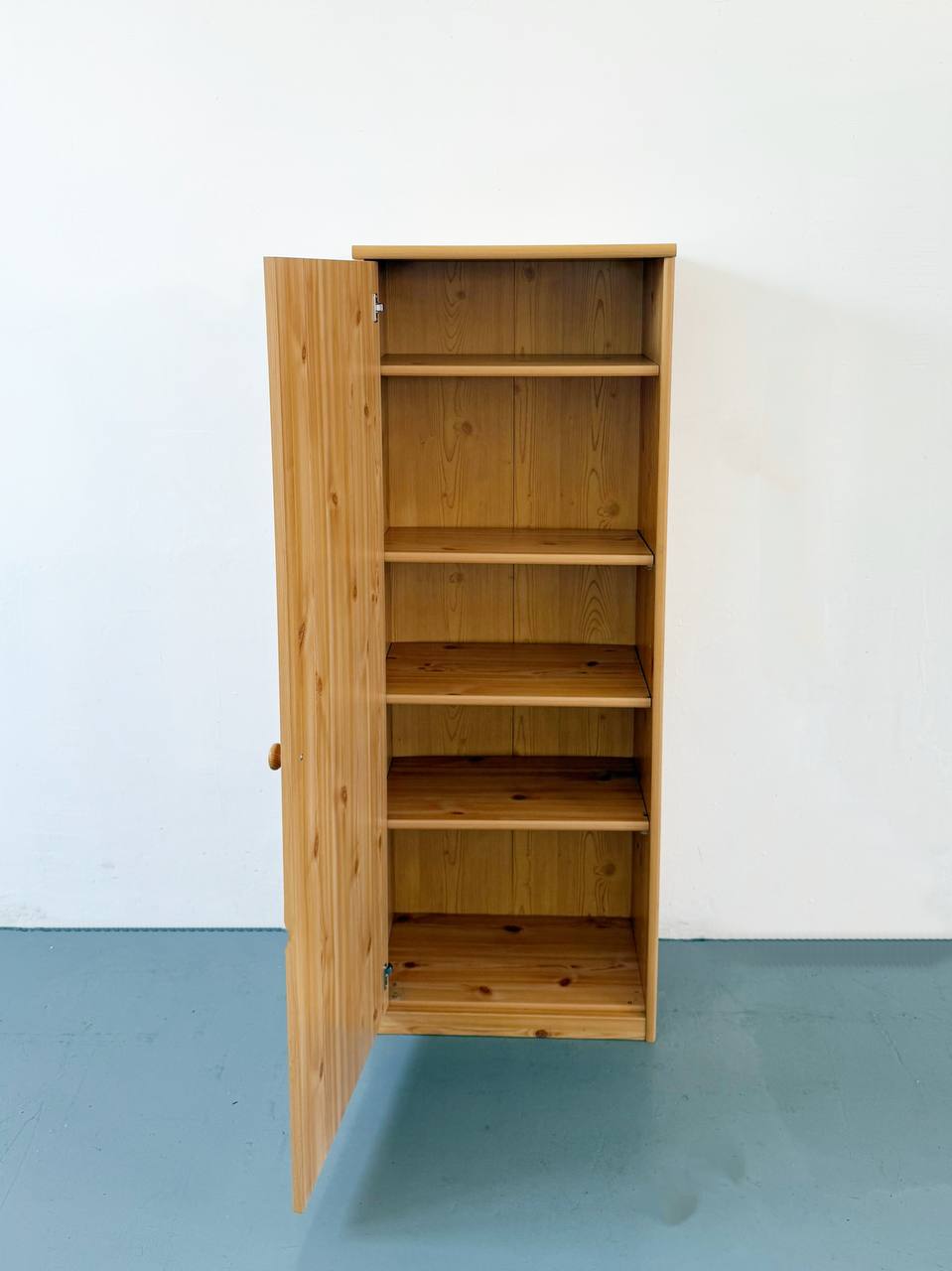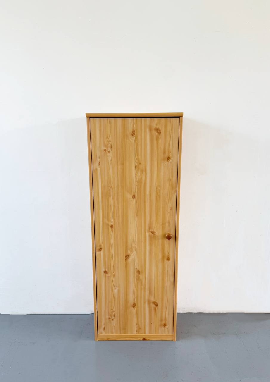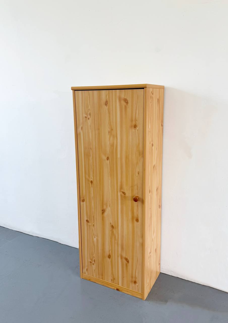 Skříň je vybavena jedněmi dvířky s kulatou dřevěnou úchytkou v barvě korpusu. Uvnitř se nachází 5 praktických polic, které poskytují promyšlený úložný prostor. Můžete zde uložit složené oblečení, ložní prádlo, krabice, knihy nebo jiné drobnosti.