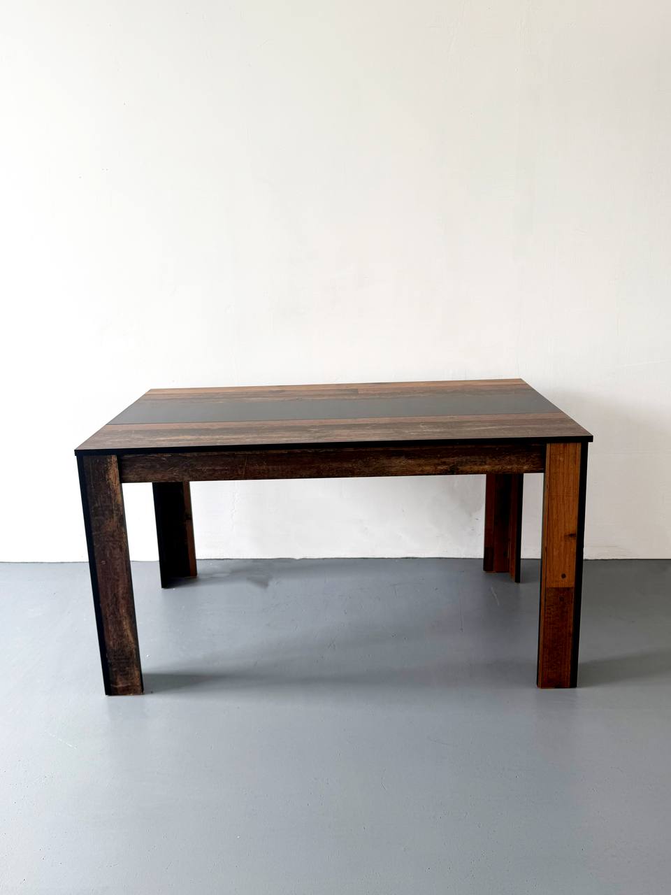 Stylový jídelní stůl, který kombinuje přírodní vzhled tmavého dřeva s moderním prvkem – elegantním černým proužkem uprostřed desky. Jeho masivní nohy zajišťují stabilitu a zároveň podtrhují robustní design.