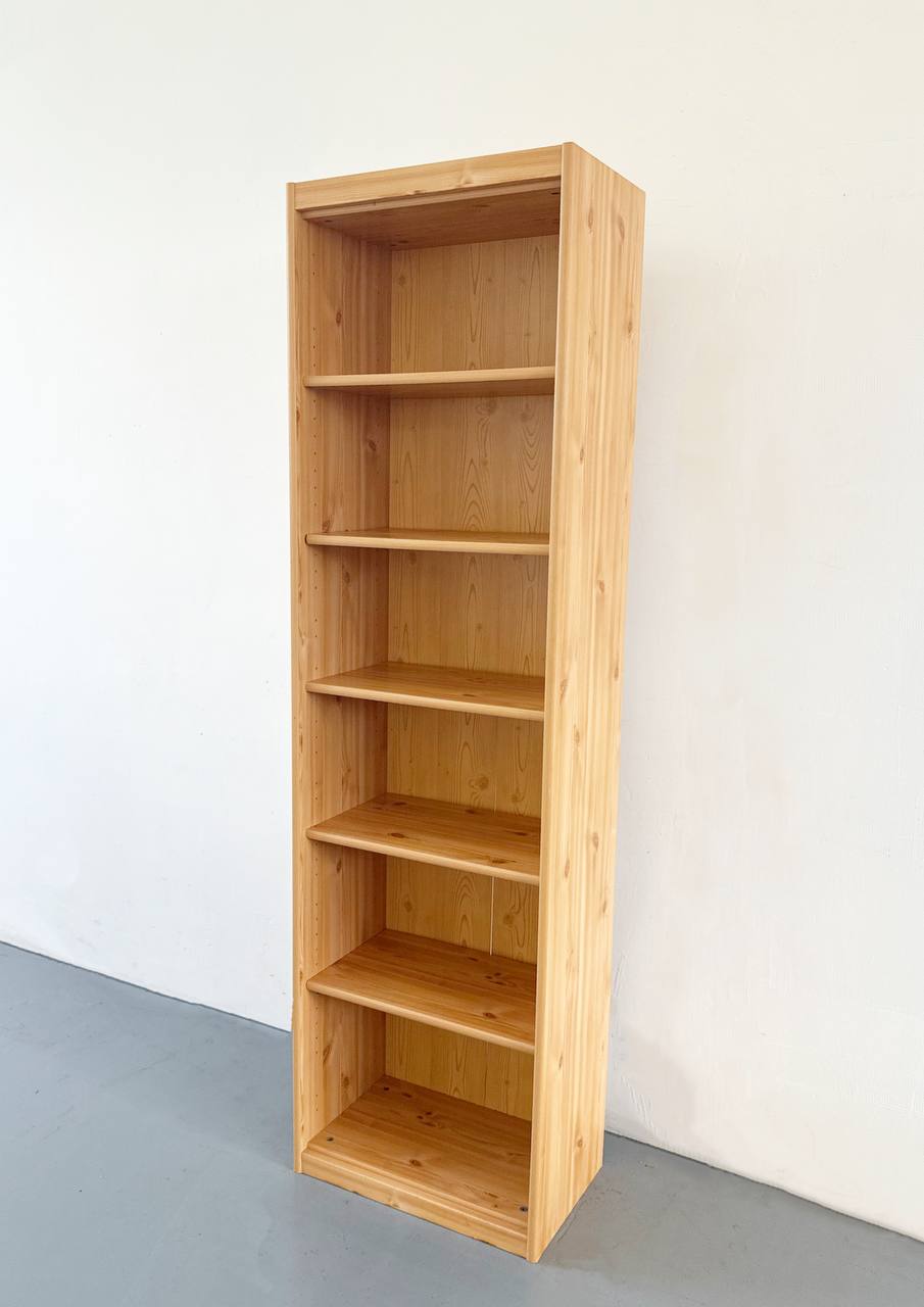 Vysoká dřevěná knihovna v klasickém stylu – ideální spojení funkčnosti a přírodní estetiky. Vyrobena ze dřeva v teplém přírodním odstínu s výraznou kresbou, stane se stylovým doplňkem do každého interiéru – od obývacího pokoje až po kancelář nebo ložnici.