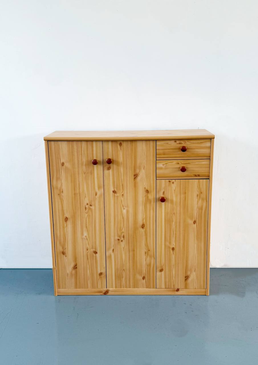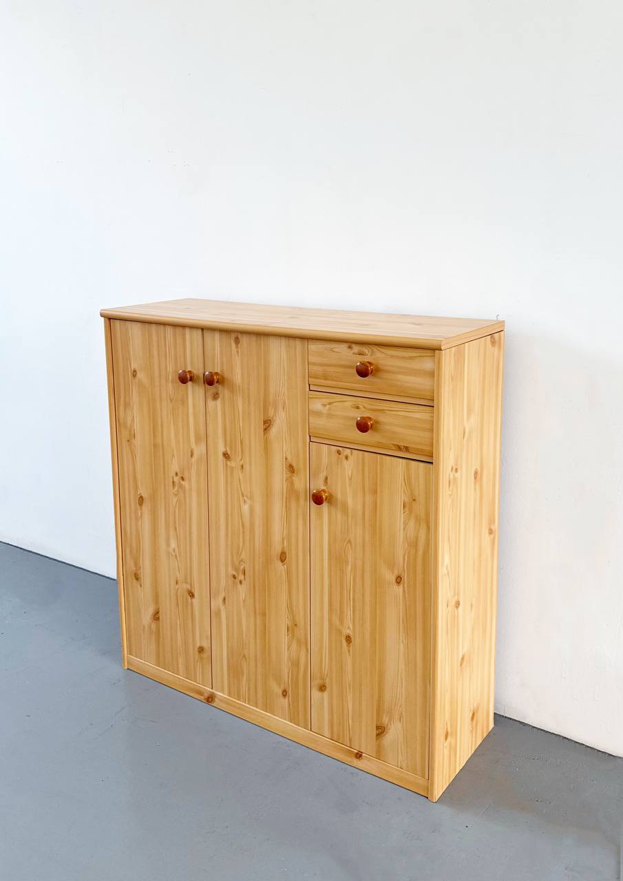 • Praktické kulaté dřevěné úchytky dodávají komodě harmonický a elegantní vzhled.