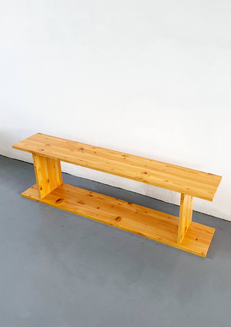 Nástěnná police z přírodního dřeva ve světlém odstínu. Má dvě dlouhé horizontální plochy a střední vertikální výztuhy pro větší stabilitu. Ideálně se hodí pro uložení knih, dekorací, květináčů nebo drobných předmětů. Díky jednoduchému a nadčasovému designu se snadno začlení do každého interiéru – od klasického až po moderní.