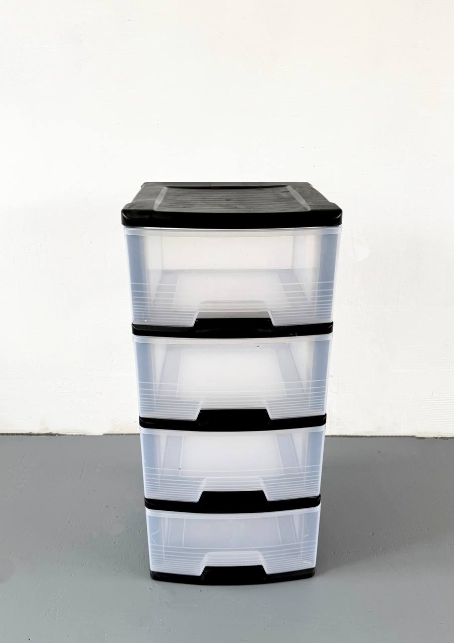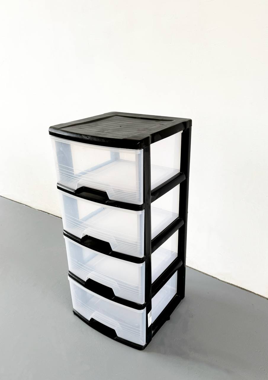 Plastová komoda se 4 zásuvkami je praktický a univerzální organizér pro domácnost, kancelář nebo dílnu. Kombinuje kompaktní rozměry, lehkost a funkčnost. Díky průhledným zásuvkám je snadné okamžitě vidět jejich obsah, což usnadňuje hledání potřebných věcí. Černý rám dodává komodě elegantní a moderní vzhled, hladký povrch se navíc snadno čistí a neabsorbuje vlhkost.