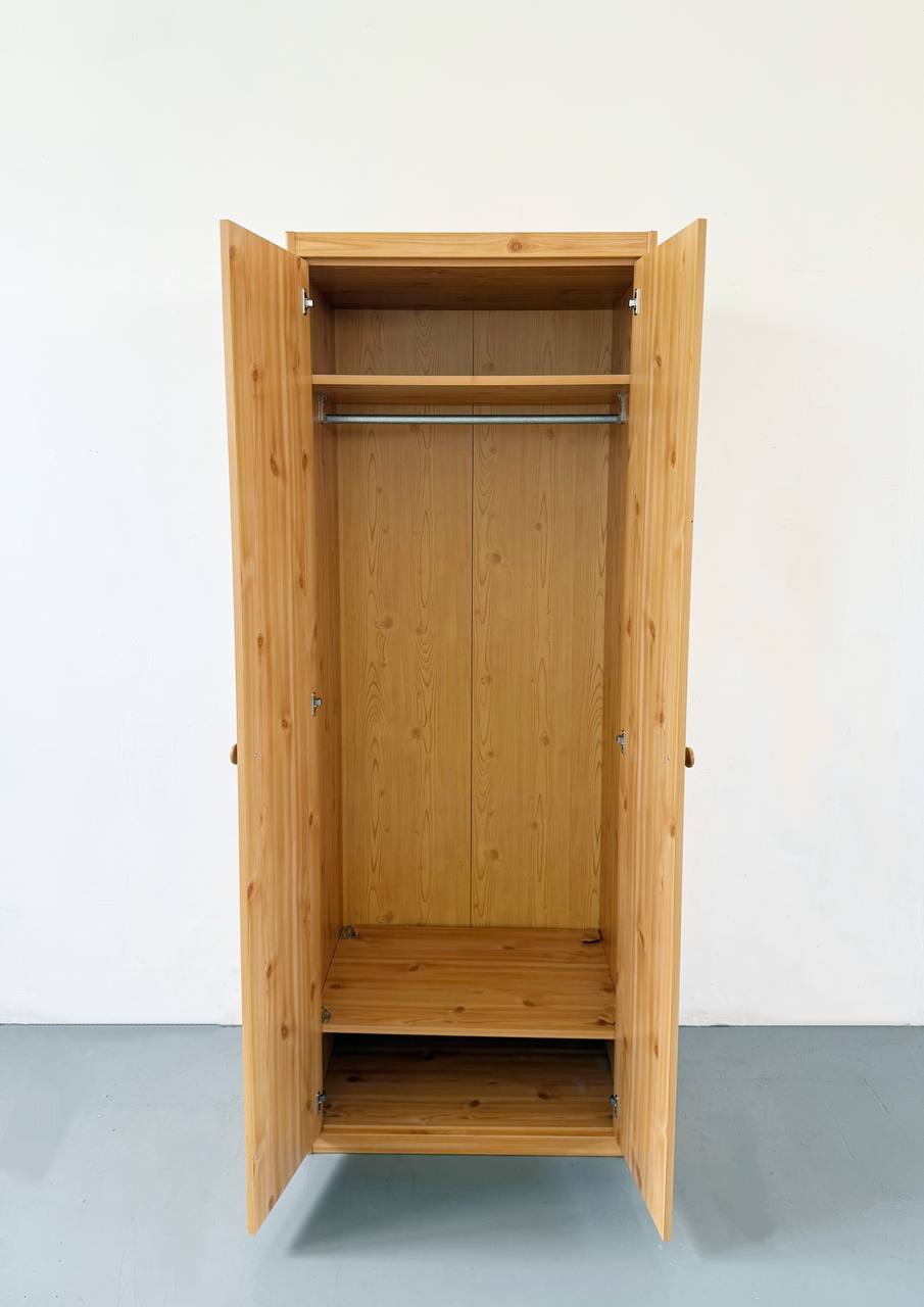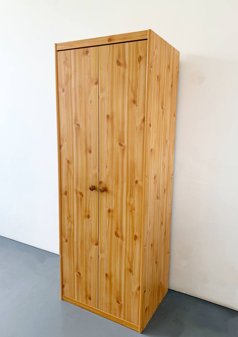 Stylová dvoukřídlá skříň v přírodním odstínu dřeva, která spojuje praktičnost a estetiku. Díky klasickému designu se skvěle hodí do ložnice, předsíně i šatny.